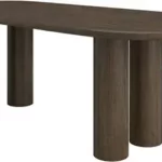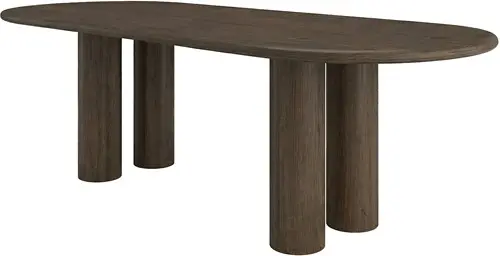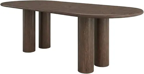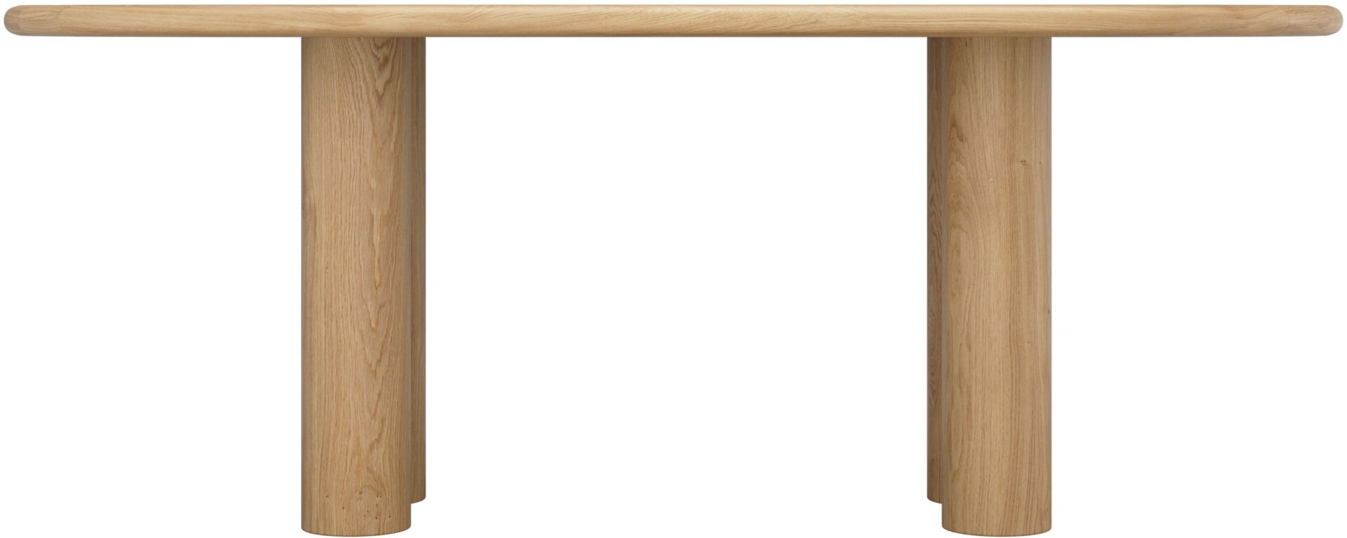 The CAMDEN Oak Oval Dining Table is crafted from solid oak and finished in a natural tone that highlights the authentic grain. This oval dining table brings warmth, strength, and balance to any dining room. The smooth curved edges soften the overall look, while the thick tabletop and bold cylindrical legs create a strong architectural feel.