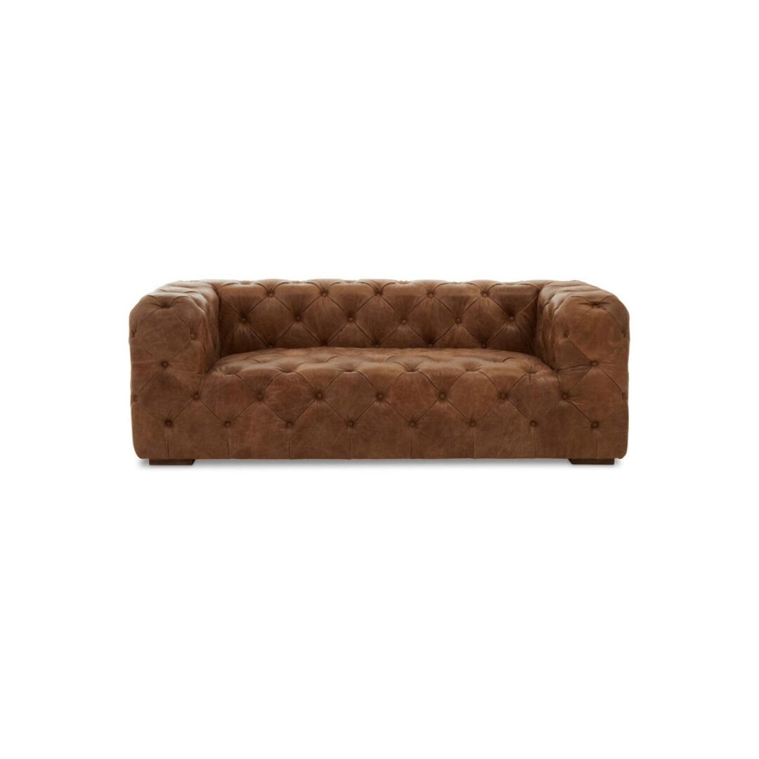 Material: Vintage tan leather, foam cushioning, wooden frame