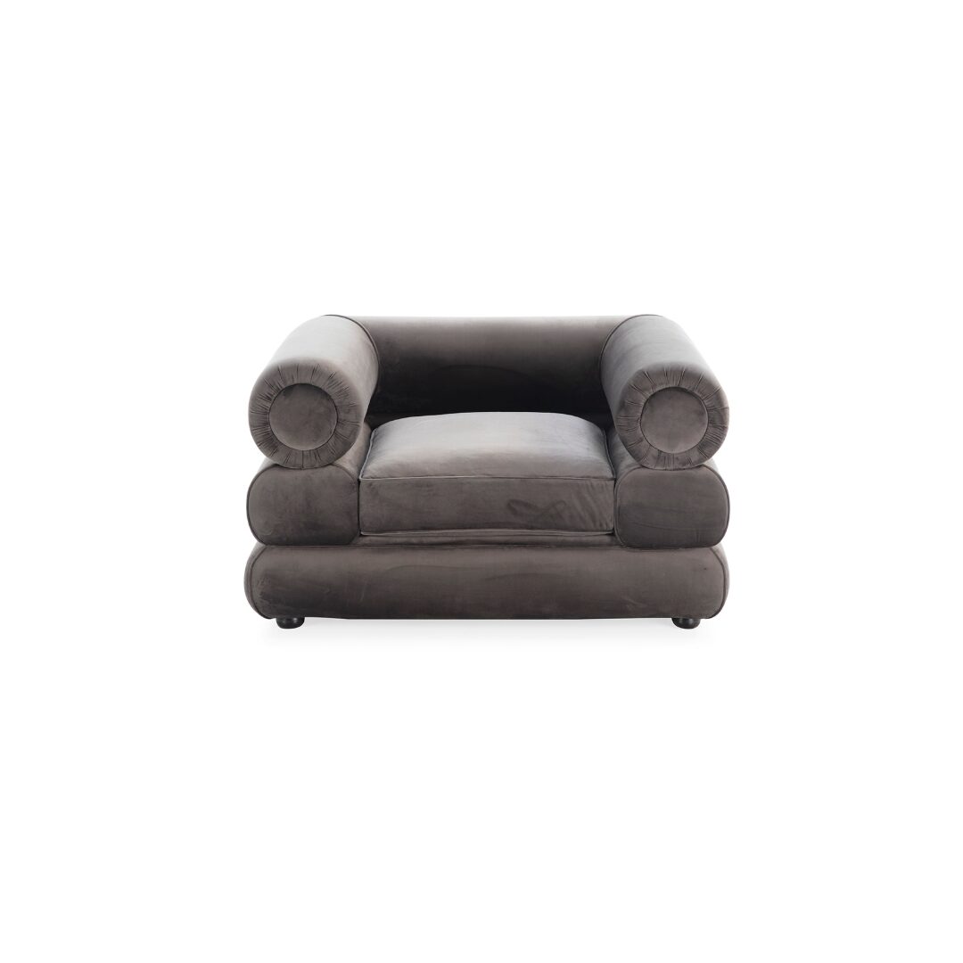 The COACH Grey Velvet Armchair delivers effortless luxury, modern elegance, and exceptional comfort in one beautifully crafted design. Upholstered in sumptuous grey velvet, this armchair brings a soft, inviting feel to any living space while maintaining a clean, contemporary silhouette. The rounded arms and deep cushioning create a sculptural, designer-inspired profile that feels both sophisticated and irresistibly comfortable.
