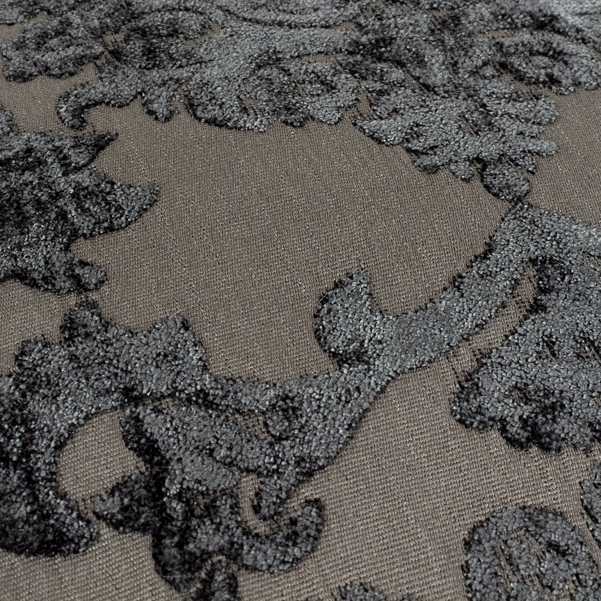 The rich black tones enhance the intricate detailing, making it a sophisticated accent for sofas, armchairs, or beds.