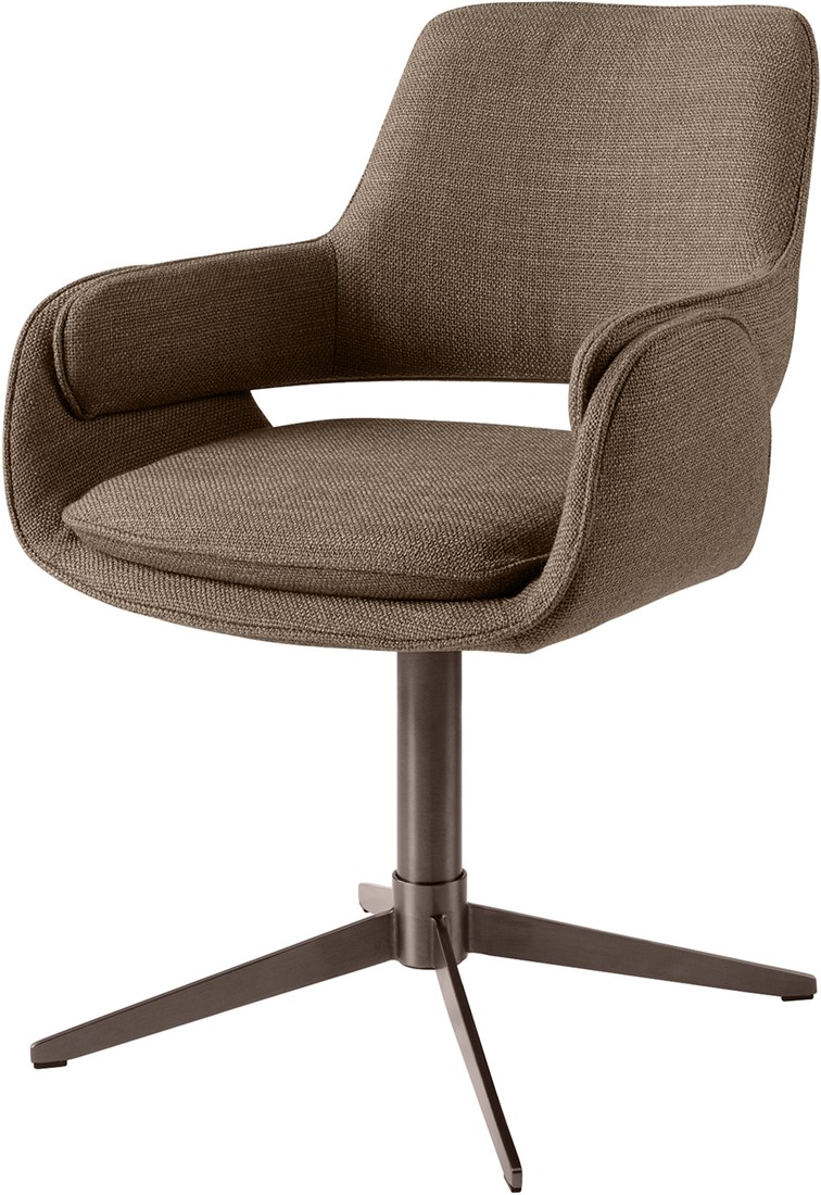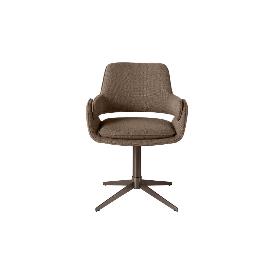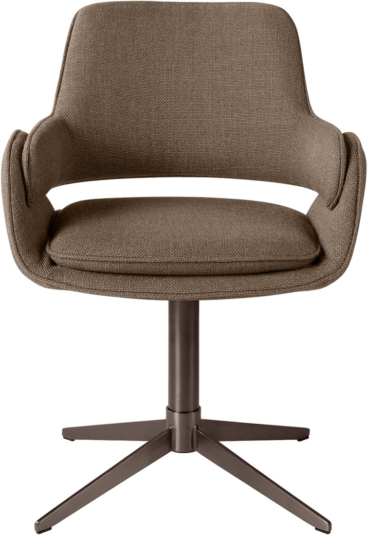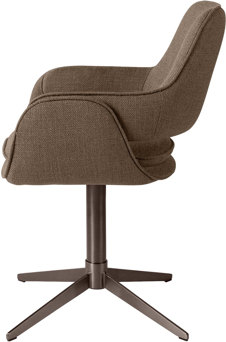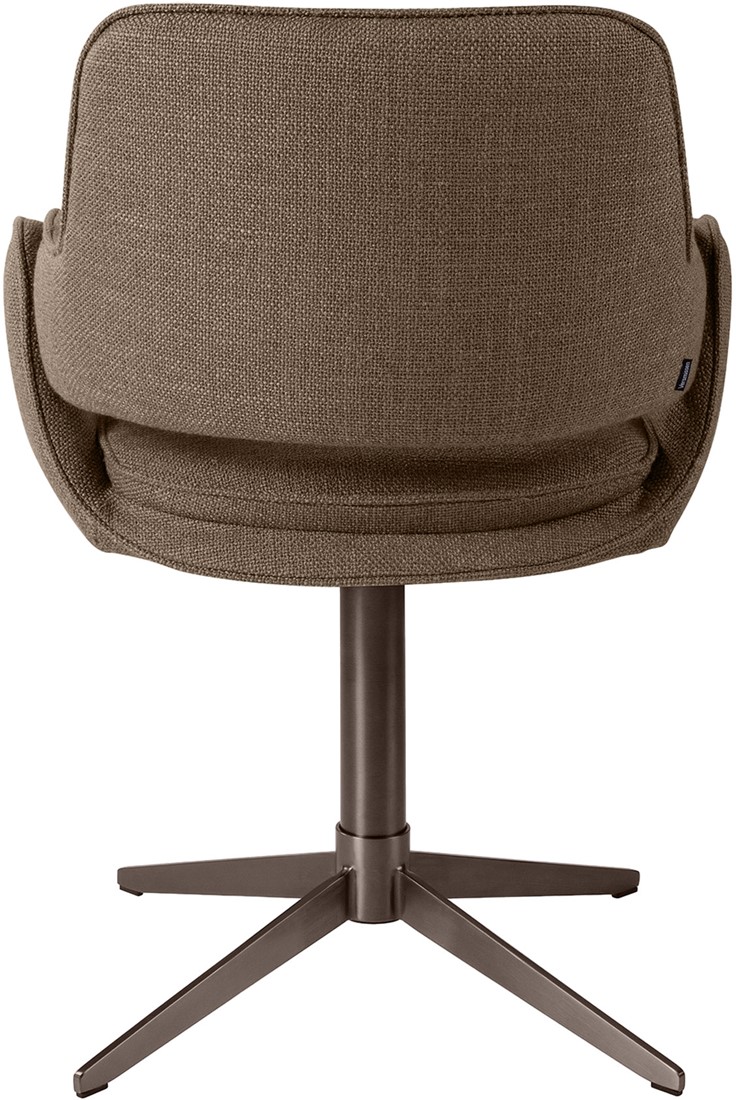 Crafted with precision, the chair features a stainless-steel frame finished in a warm, brushed bronze plating that complements contemporary interior styles. The clean silhouette, balanced proportions, and tactile upholstery make this chair a standout choice for dining rooms, restaurants, and elegant entertaining spaces.