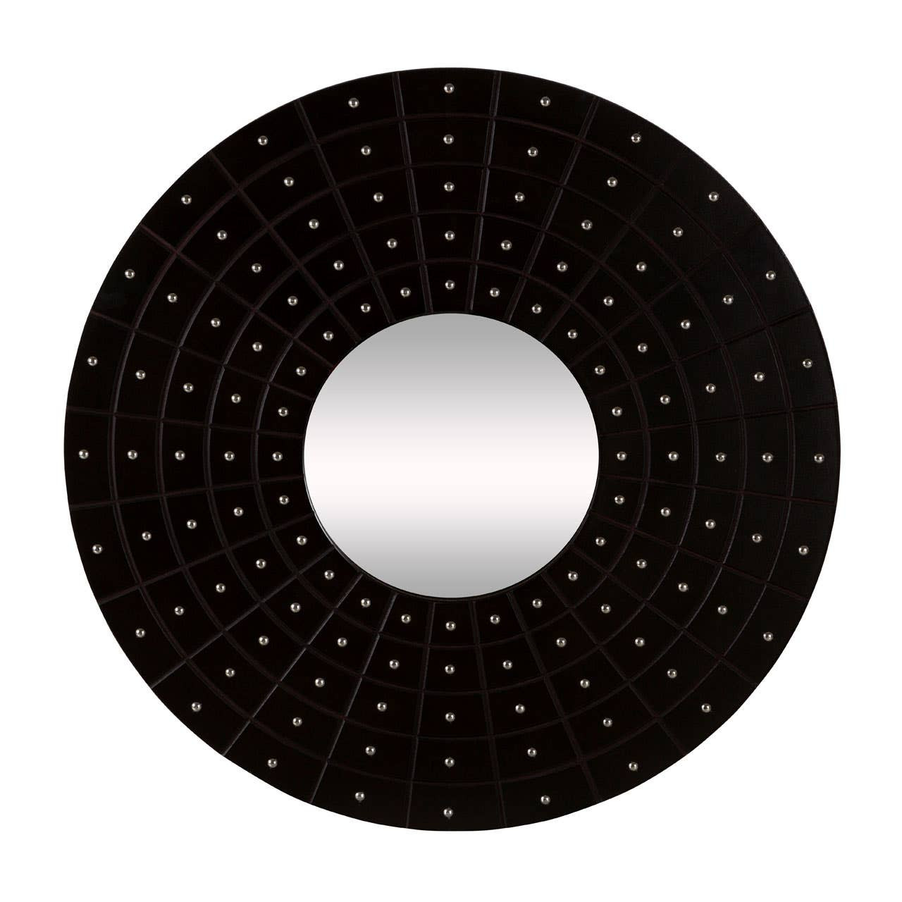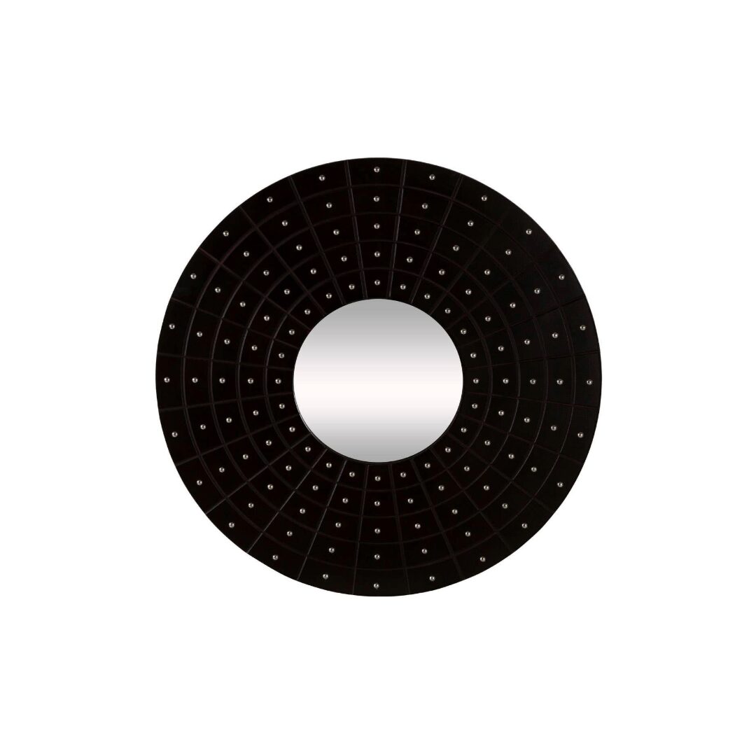 Each segment of the frame contains a silver stud that creates a reflective counterpoint around the mirror surface. As a result, the design catches surrounding light and introduces a subtle sense of glamour without overwhelming the room. In addition, the polished stud accents enhance the mirror’s decorative appeal, so it works equally well as a functional mirror and statement wall feature.