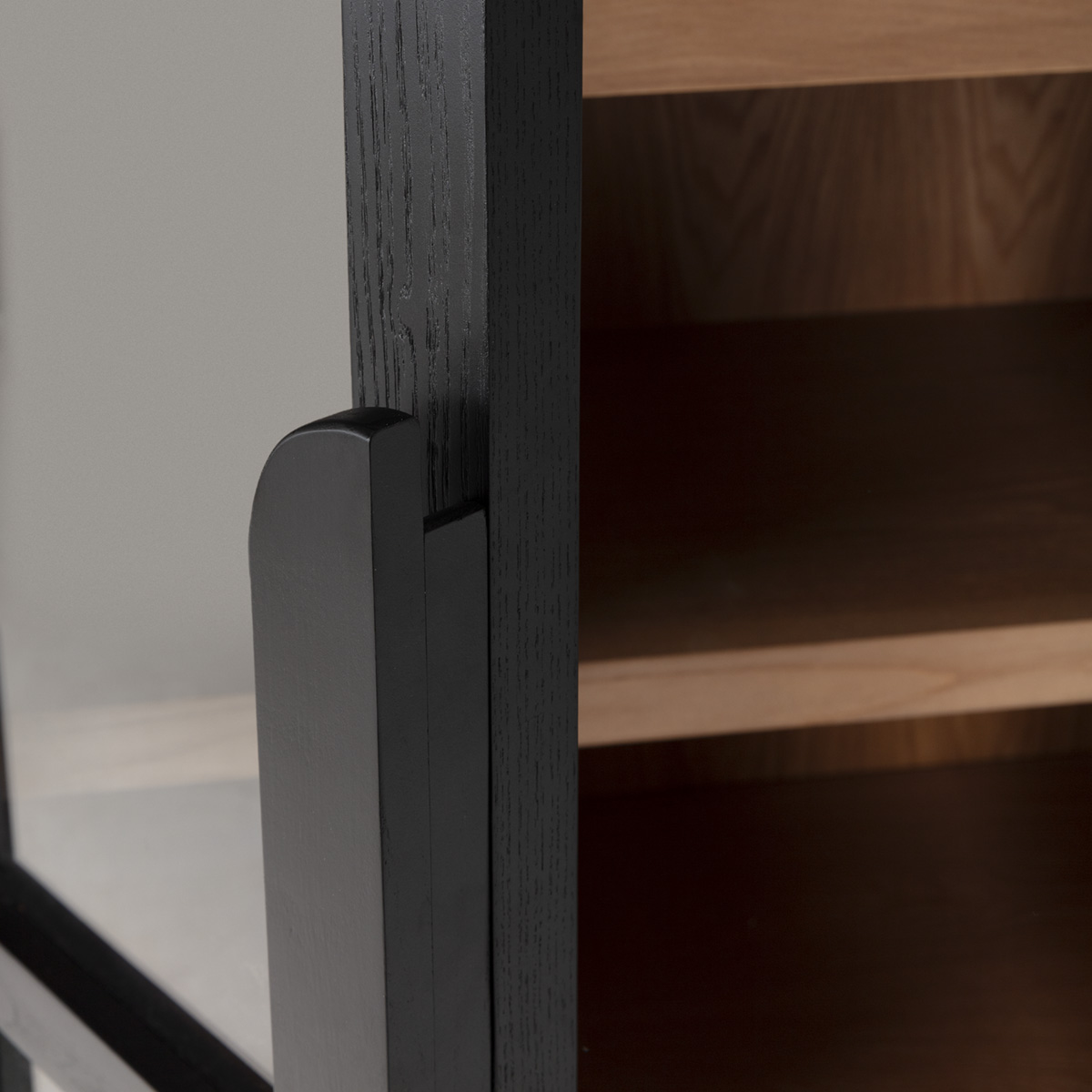 The JAMES Ashwood Display Cabinet is a striking storage piece that blends modern sophistication with timeless craftsmanship. Featuring a tall, arched silhouette, this cabinet combines a rich walnut interior with a bold black ashwood frame for a refined contrast.