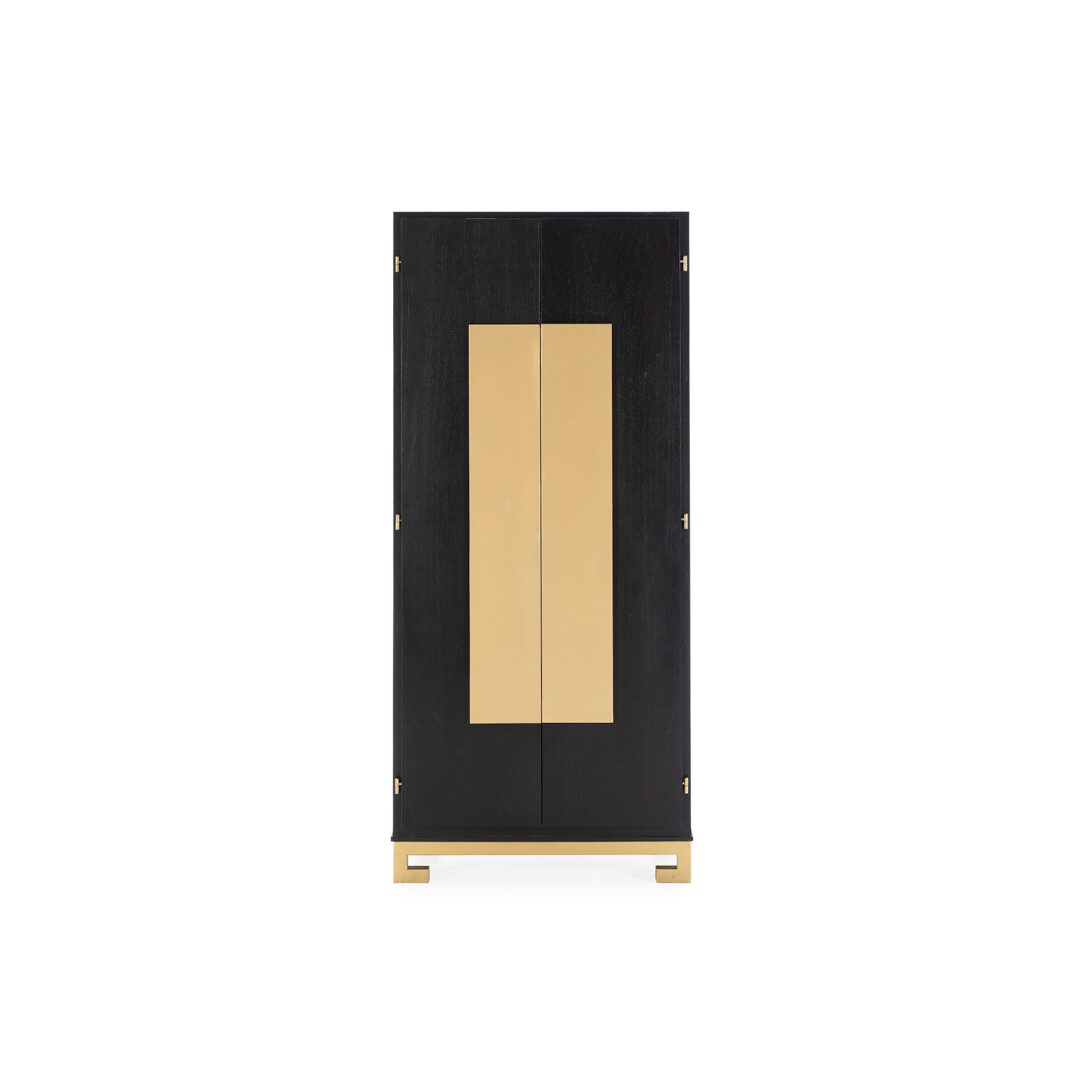 The JANUS Black And Gold Wardrobe is a luxurious storage solution designed to elevate modern interiors with elegance and sophistication. Featuring a striking combination of rich black wood and refined gold accents, this wardrobe creates a bold statement while offering practical functionality.