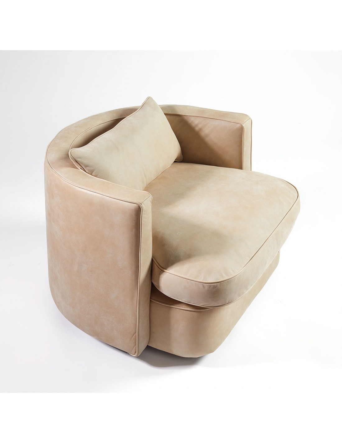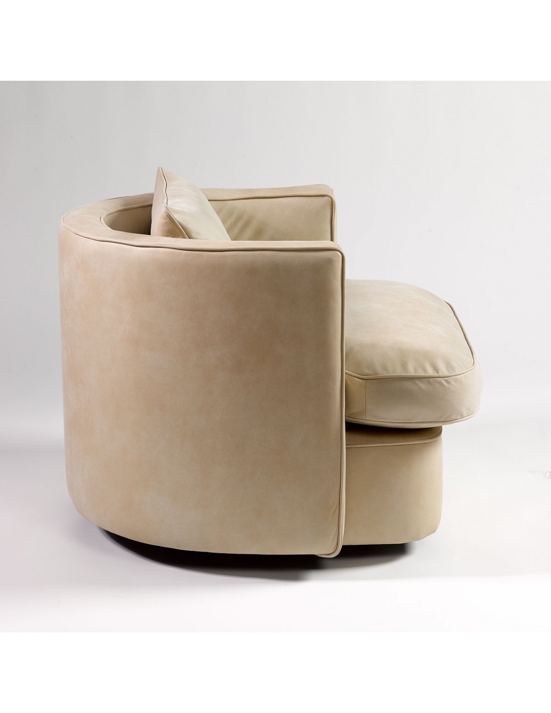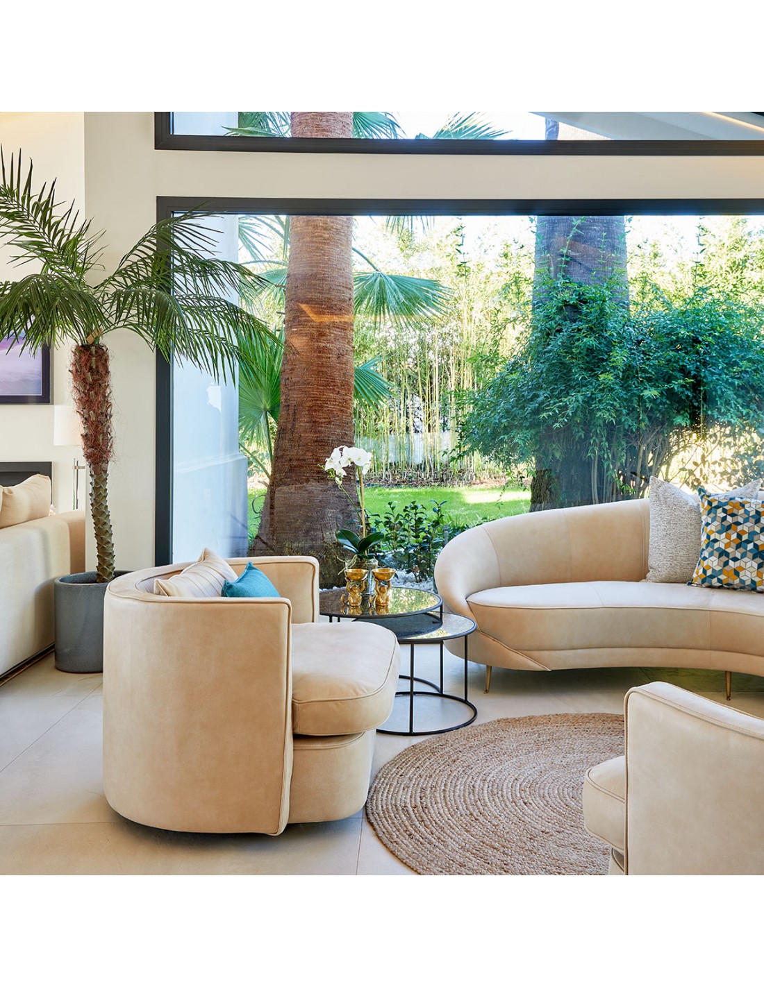 The JULES Off-White Armchair embodies understated sophistication through its sleek semi-circular silhouette and buttery soft leather upholstery. Set on a black metal frame, this armchair combines modern design with enduring comfort, making it a versatile addition to any living room, lounge, or reading corner.