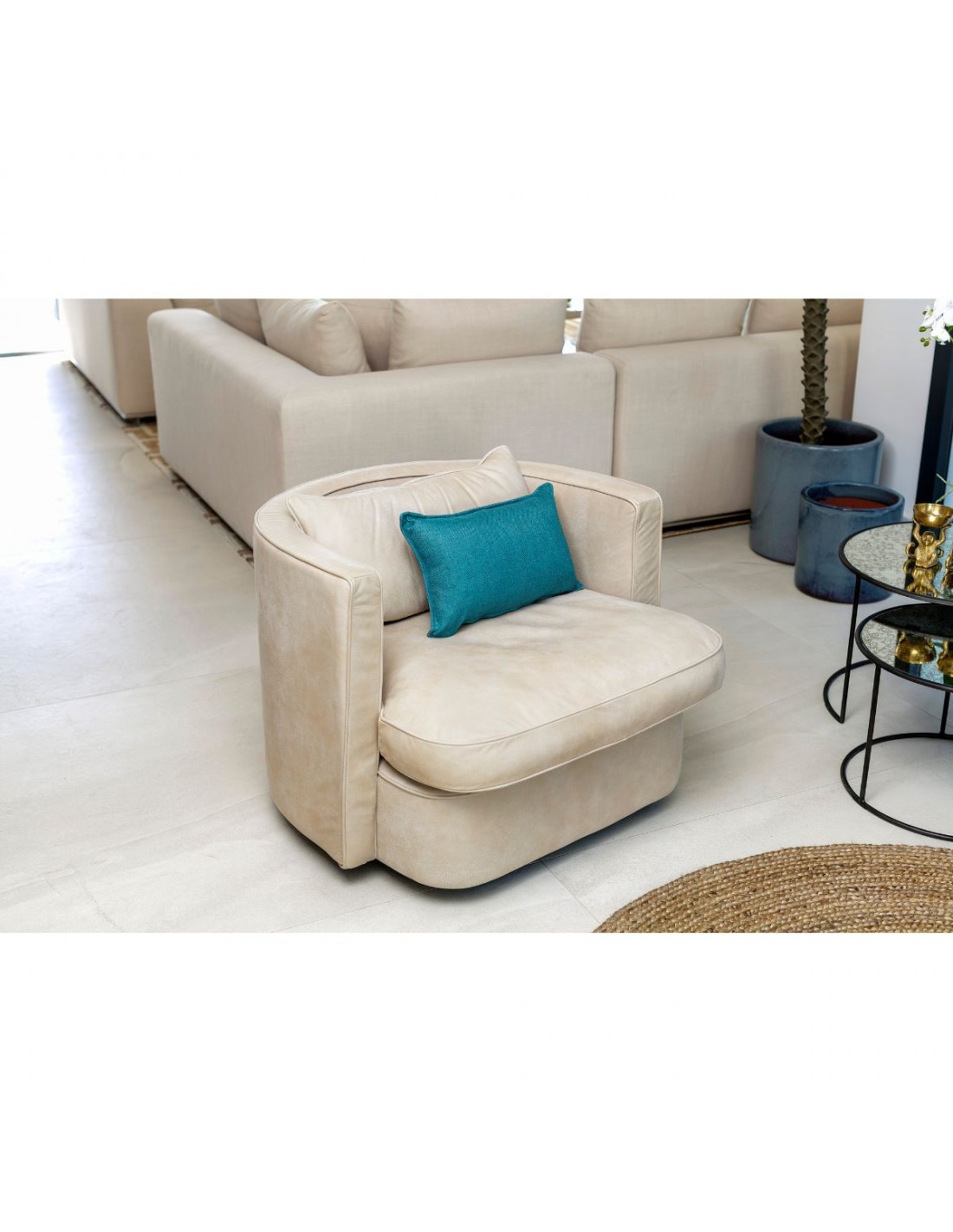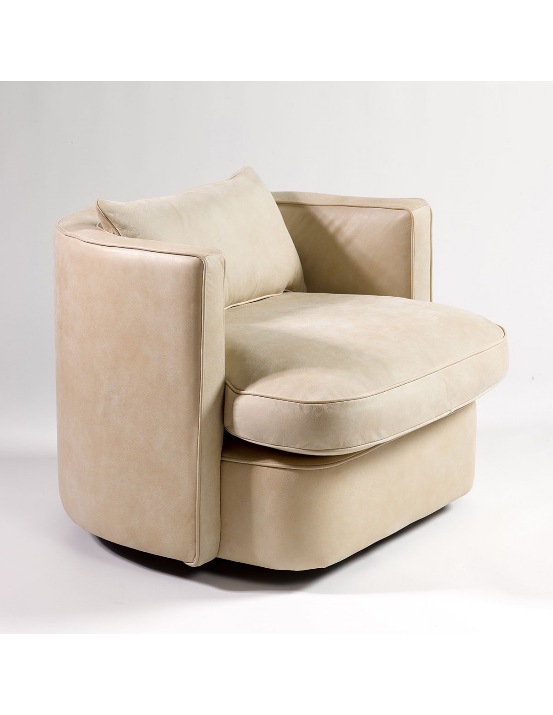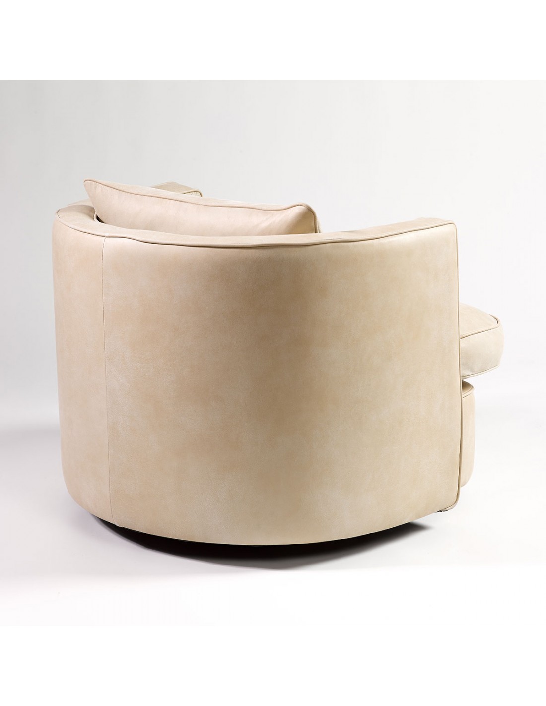 Its plush seat and back cushions, upholstered in matching off-white leather, ensure both style and relaxation. The neutral tone blends seamlessly with a variety of colour palettes, from minimalist monochromes to warm, earthy interiors.