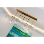Sculptural and refined, the LUZIA chandelier combines elegance with modern edge. Crafted in antique gold lacquered metal and fitted with seven delicate glass globes, it creates a striking visual impact with its clean geometry and contemporary design. A statement piece for dining rooms, living spaces, or grand hallways.