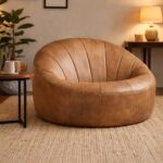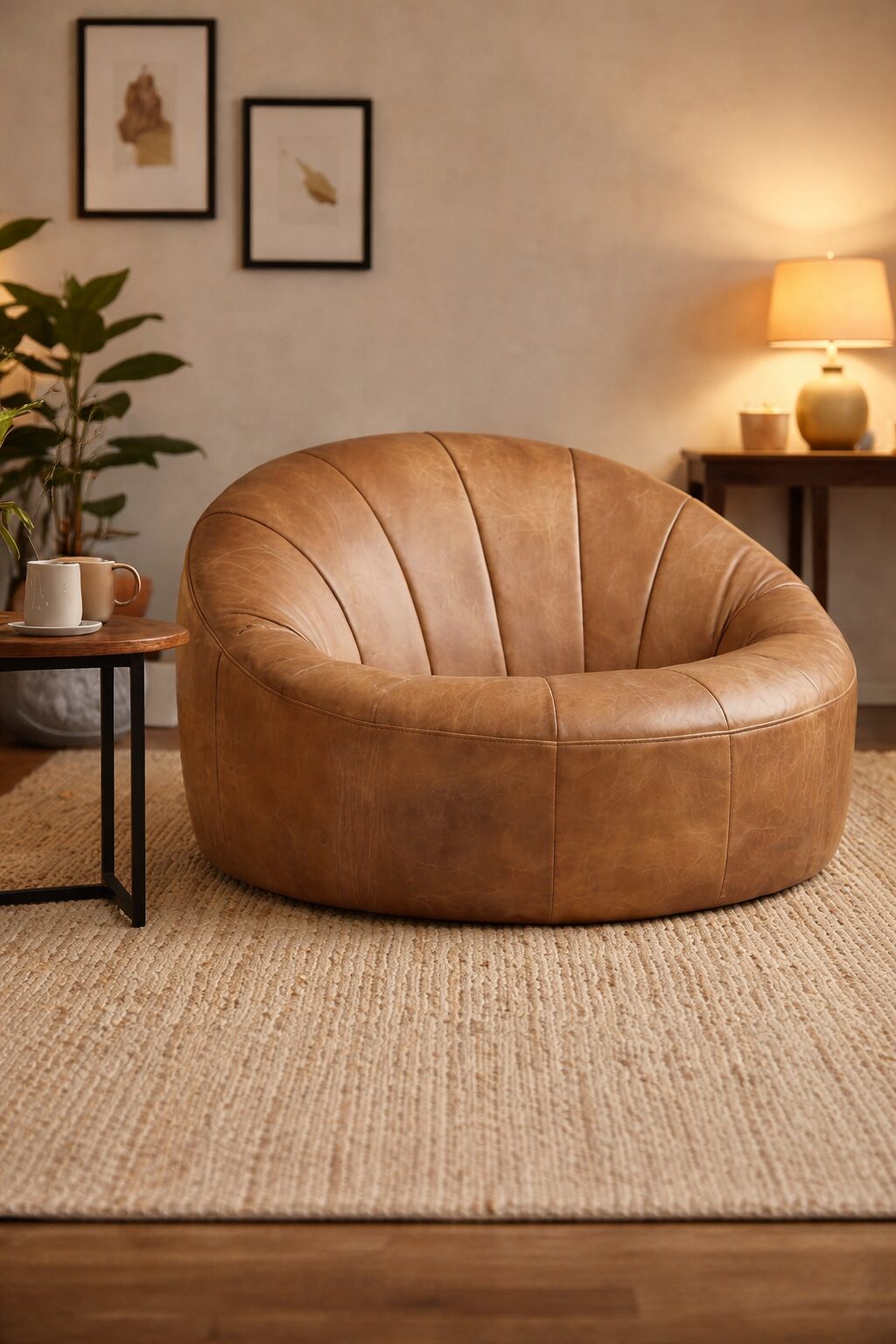 The MARCELLA Light Brown Leather Lounge Cocoon Chair delivers exceptional comfort with a bold, sculptural design that elevates any living space. Its cocoon-style form wraps around the body, so it creates a relaxing and supportive seating experience while adding a strong visual statement.