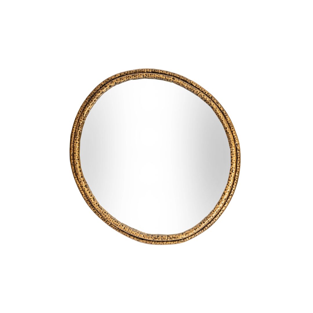 This striking wall mirror is designed to create instant visual impact through texture, light, and form. Its distinctive dimpled metal frame introduces sculptural depth, allowing light to play across the surface and enhance the surrounding space. Finished in a warm gold tone, it brings a refined yet versatile presence that works effortlessly across contemporary and classic interiors.