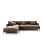 The PIQUERA Sofa exudes a luxury aesthetic with its premium brown upholstery and sophisticated design. The corner configuration maximizes seating space, making it ideal for larger living rooms or open-plan areas. The elegant slim legs add a touch of modernity and ensure stability, while the variety of cushions provide added comfort and style.