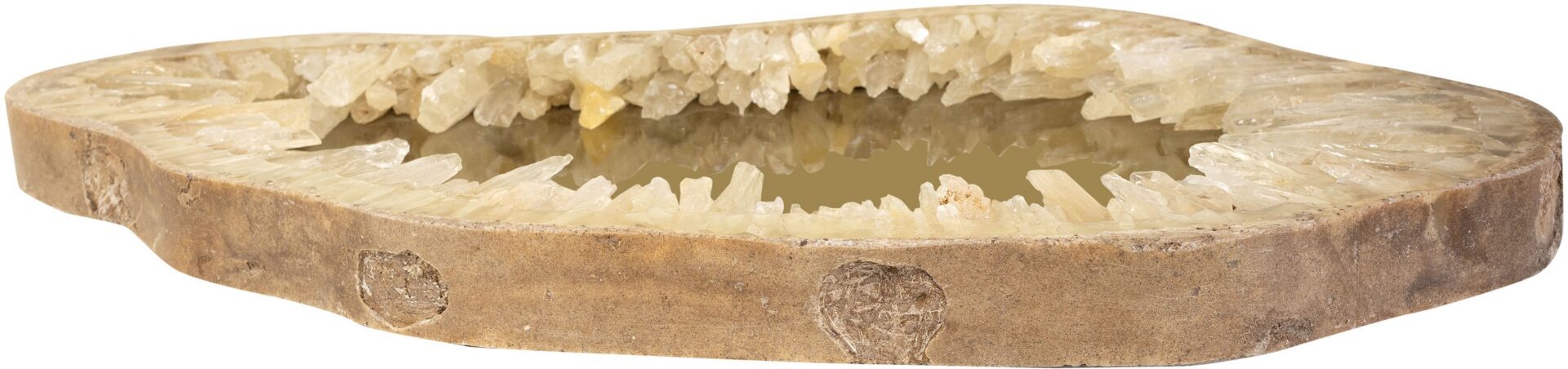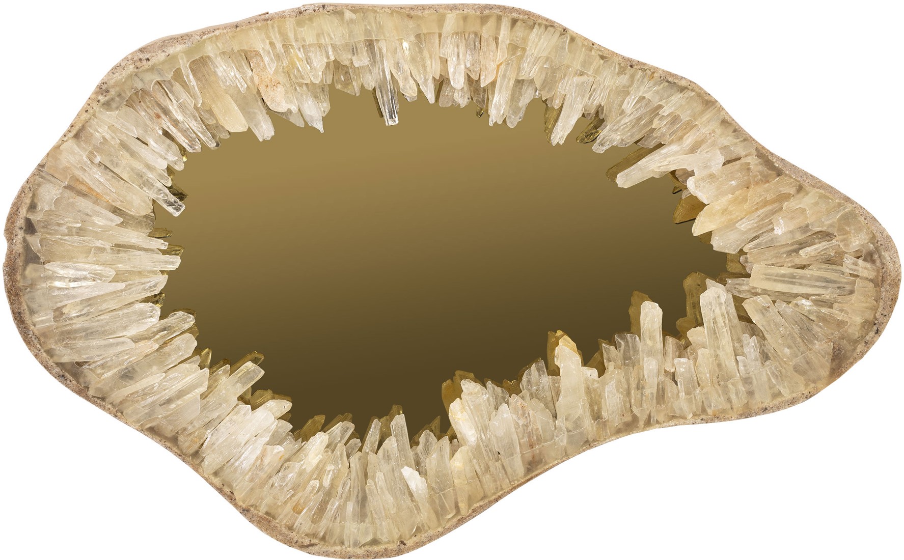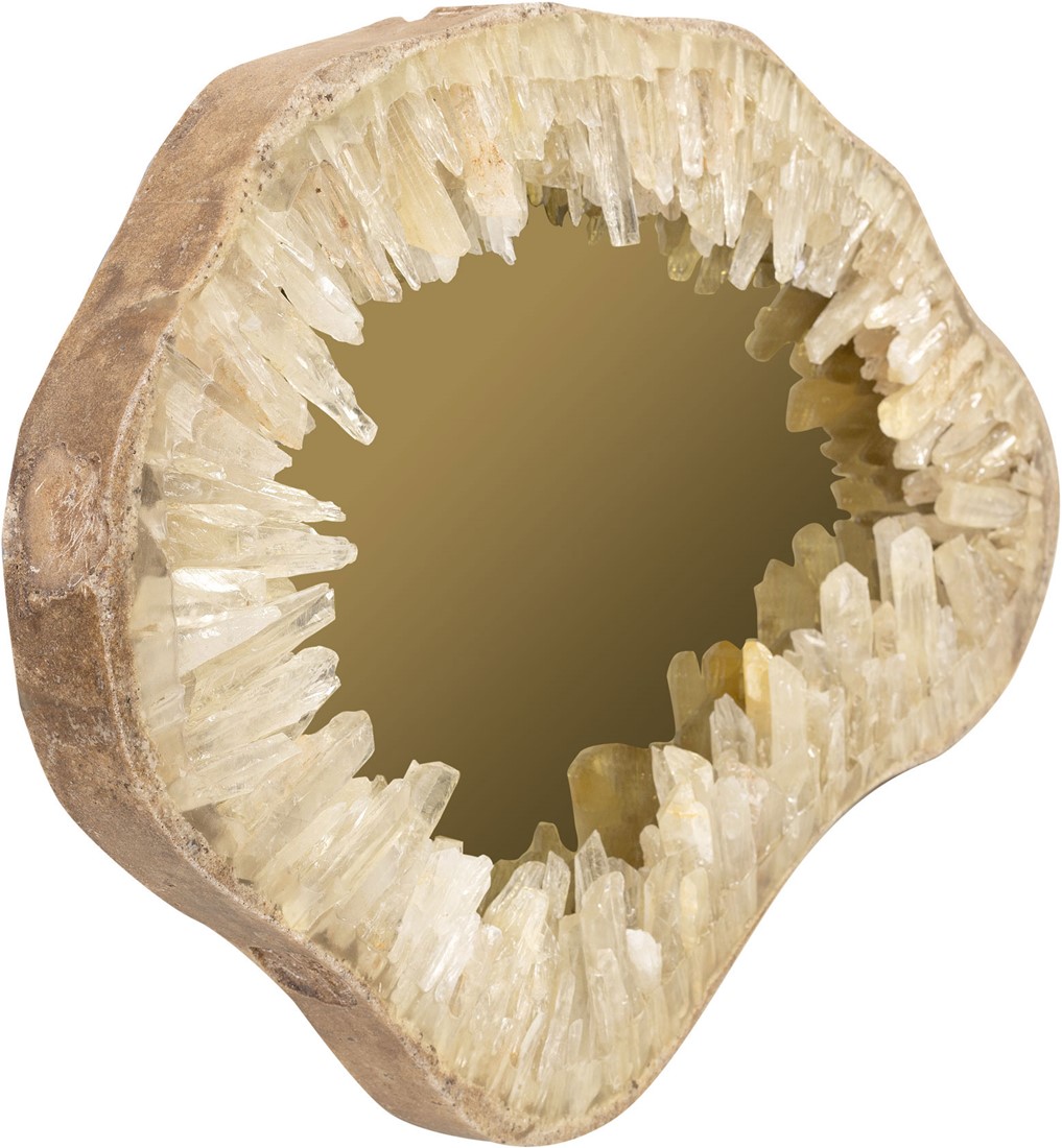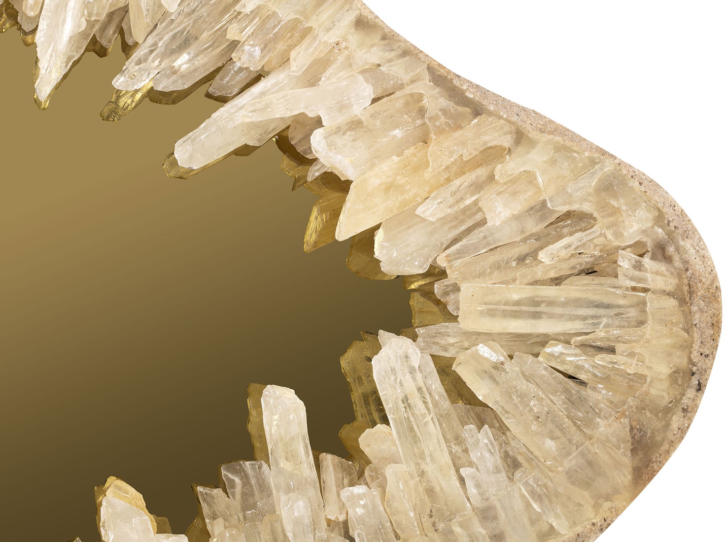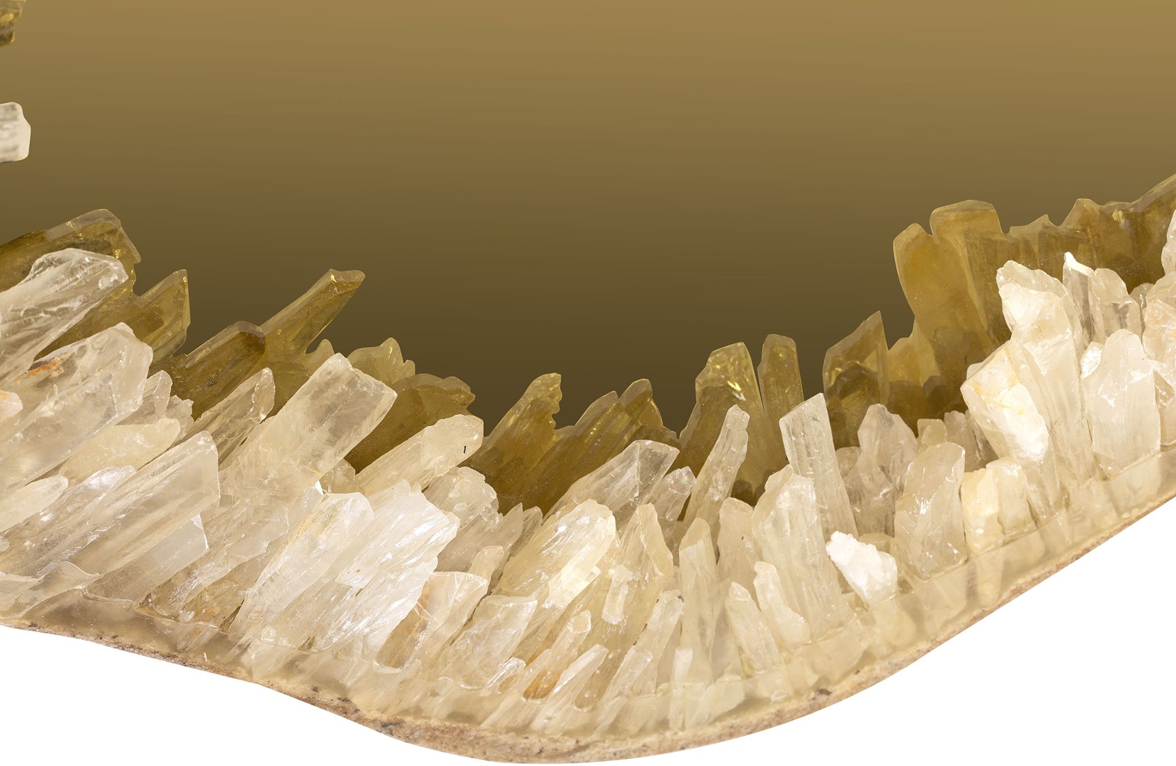 An extraordinary blend of nature and artistry, the QUARTZ Natural Mirror brings geological elegance into contemporary interiors. Handcrafted from natural quartz crystal, resin, and gold-finished mirror glass, this one-of-a-kind piece mimics the raw beauty of a gemstone geode – creating a striking focal point that radiates texture, light, and sophistication.