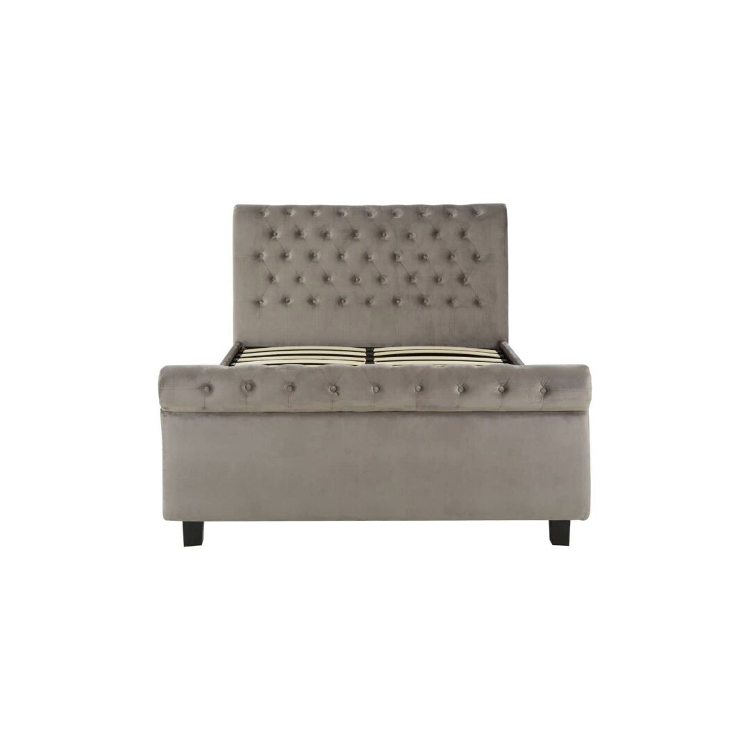 The ROMIR Grey Kingsize Ottoman Bed blends timeless sophistication with everyday practicality, making it the ultimate centrepiece for your bedroom. Upholstered in luxurious steel grey velvet, this bed radiates elegance while offering a plush and inviting finish. The traditional rolled headboard and footboard create a stately silhouette, while deep diamond button tufting adds texture and refinement.