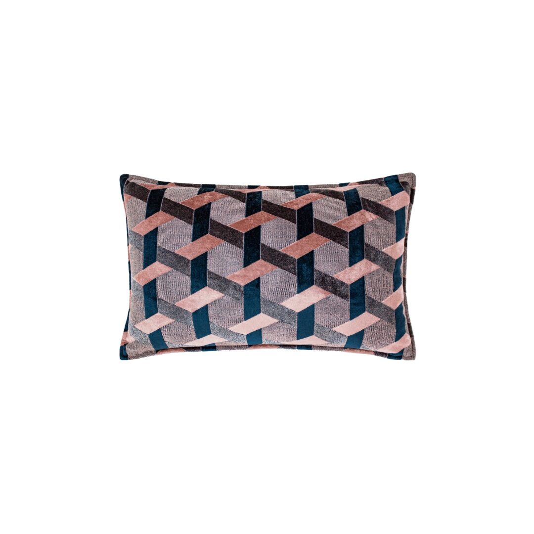 Delano Velvet Geometric Cushion – Blush/Navy