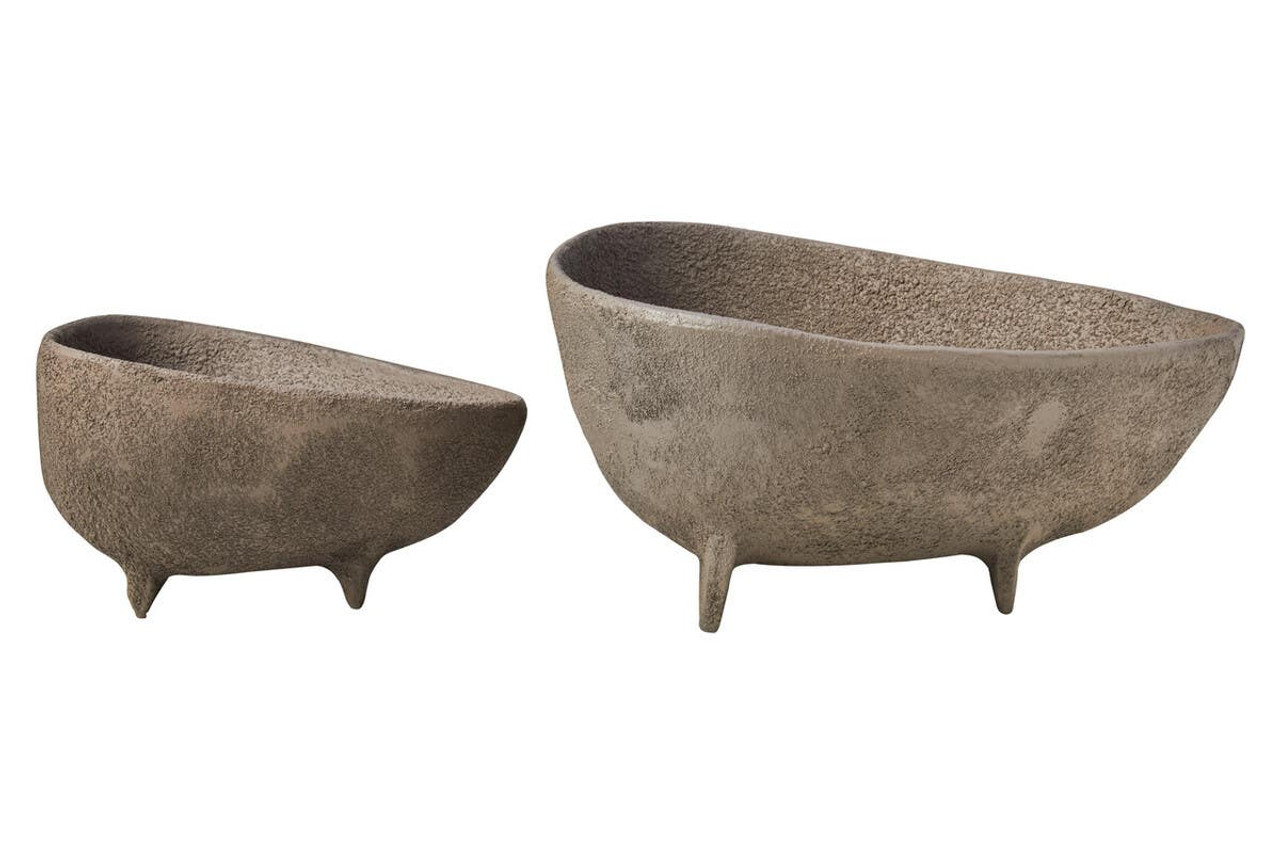 Elevate your décor with the VIRA Set of 2 Textured Grey Bowls, a stylish and versatile addition to any modern home. Crafted from durable aluminium, these bowls feature a refined textured grey finish and elegantly curved sides that exude sophistication. Each bowl is perched on a footed base, offering both stability and sculptural appeal — perfect for displaying decorative accents or serving as a striking standalone statement piece.