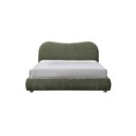 Olive Upholstered Bed with Curved Headboard