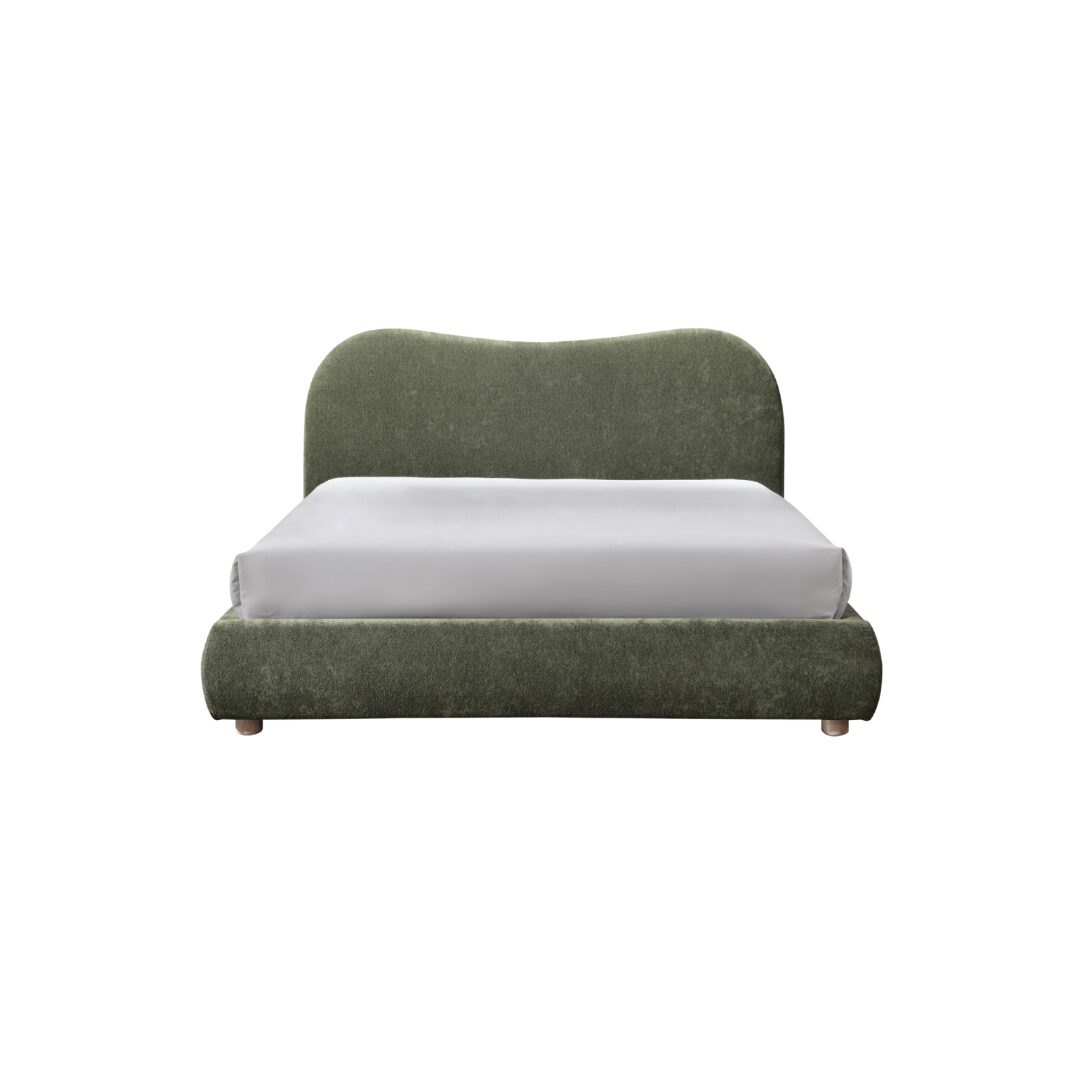 The WAVE Bed in Olive features a soft, curved silhouette upholstered in a stylish olive weave fabric. Its natural green tone brings warmth and calm to the bedroom, making it suitable for modern, minimalist, and contemporary interiors. The gently rounded, cushioned headboard adds comfort and visual softness, creating an inviting focal point.
